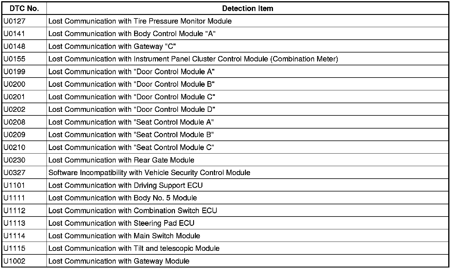 HINT: The rear multiplex network door ECU LH is connected to the CAN communication system but CAN communication DTCs are not output.