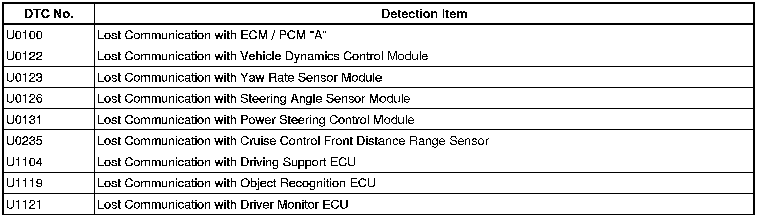 HINT: The object recognition ECU is connected to the CAN communication system but CAN communication DTCs are not output.