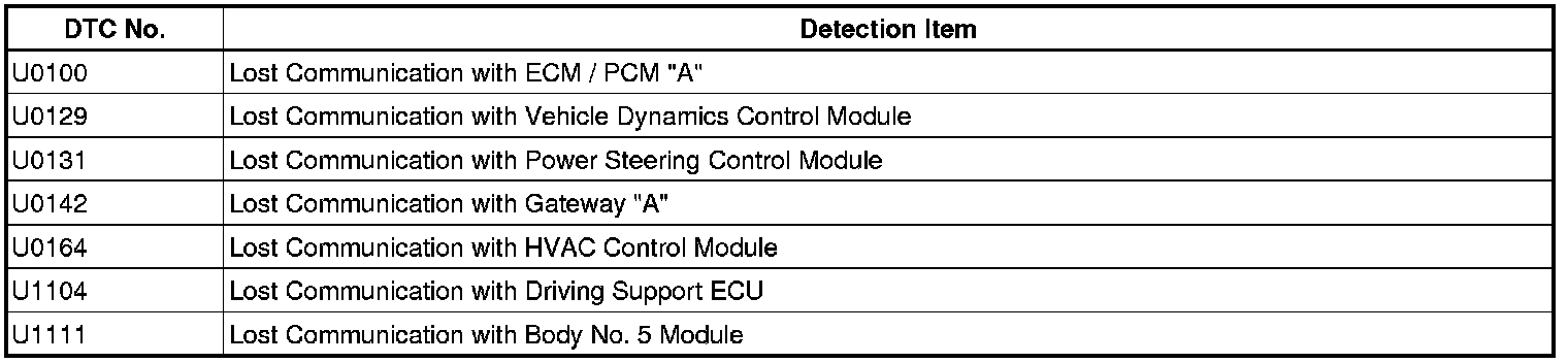 HINT: The center airbag sensor is connected to the CAN communication system but CAN communication DTCs are not output.