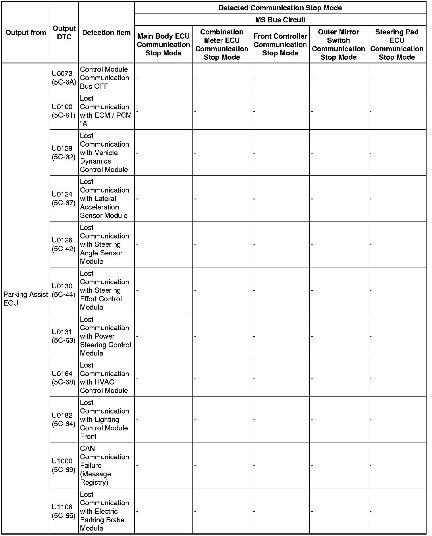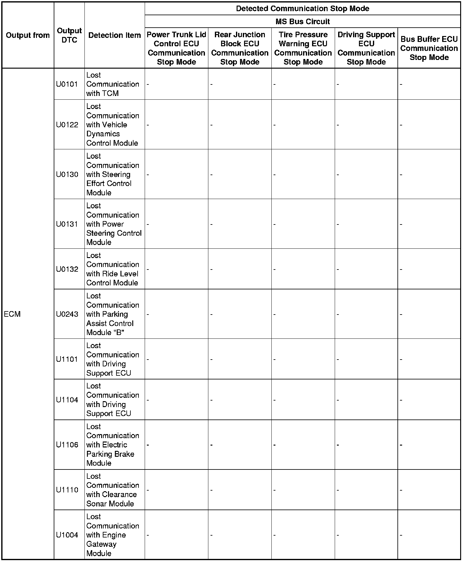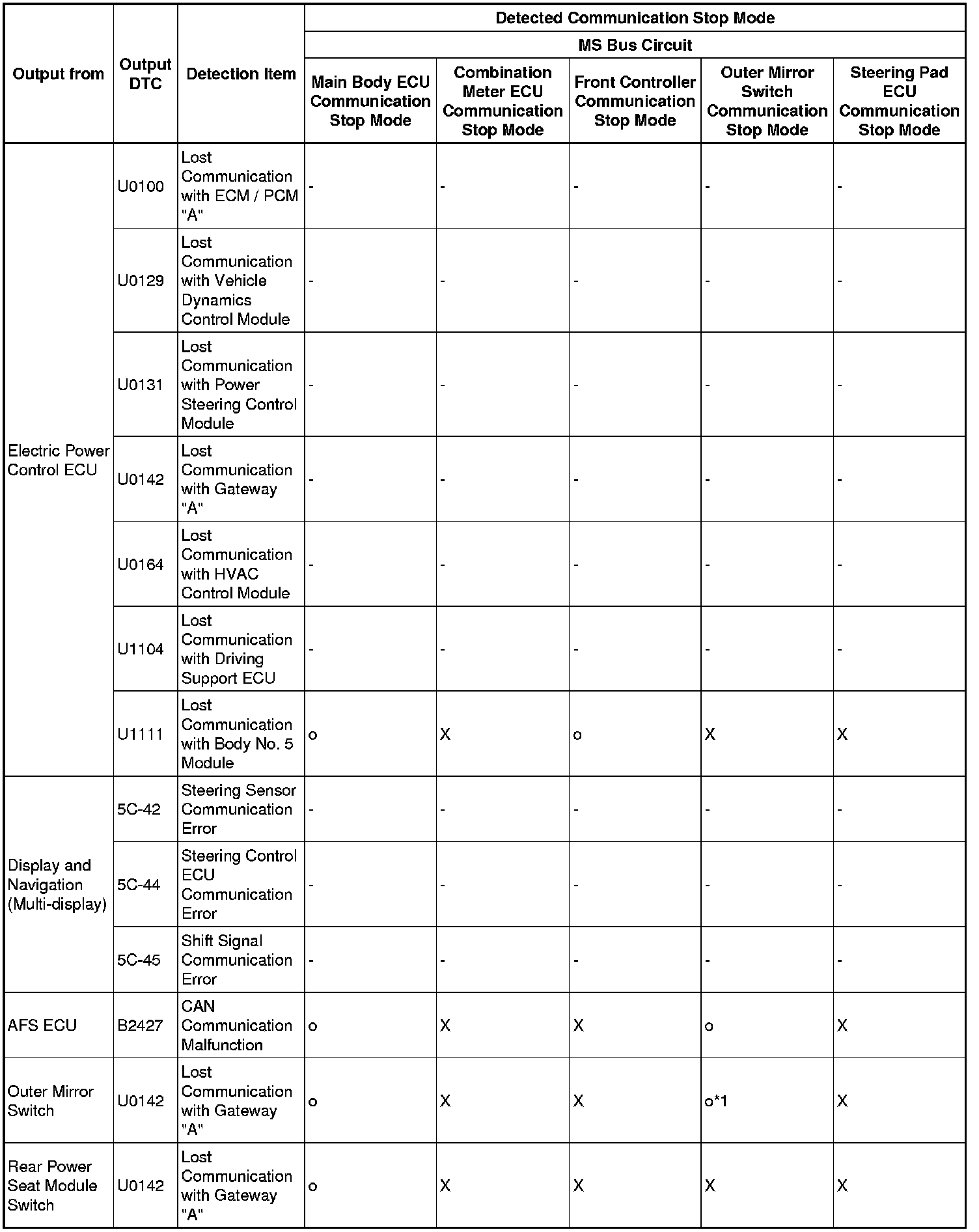 - *5: Only present DTCs output.
