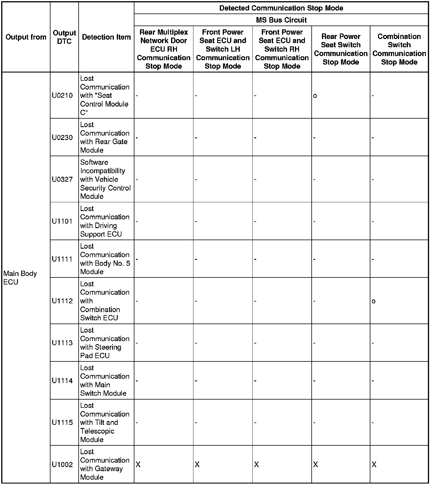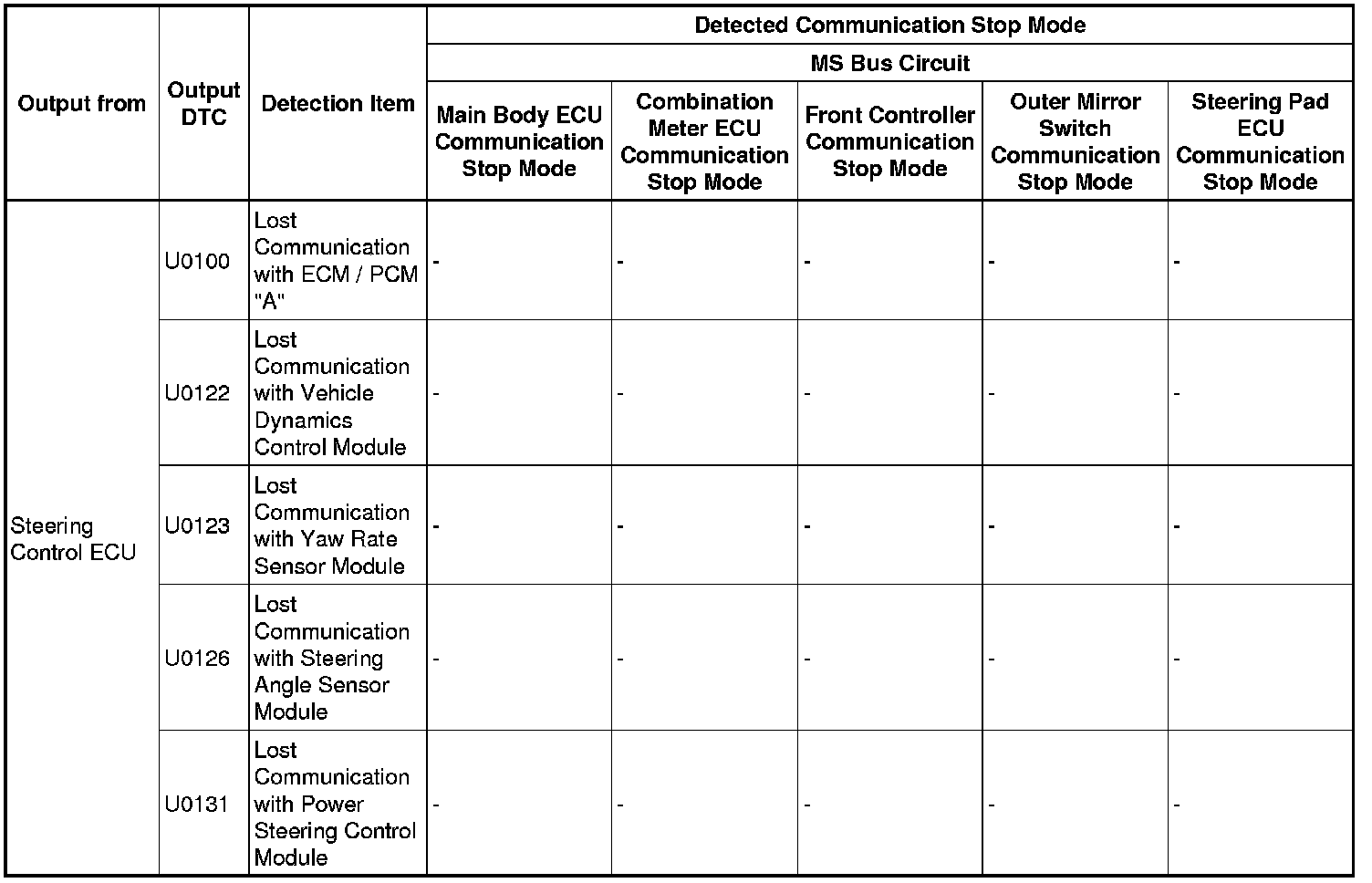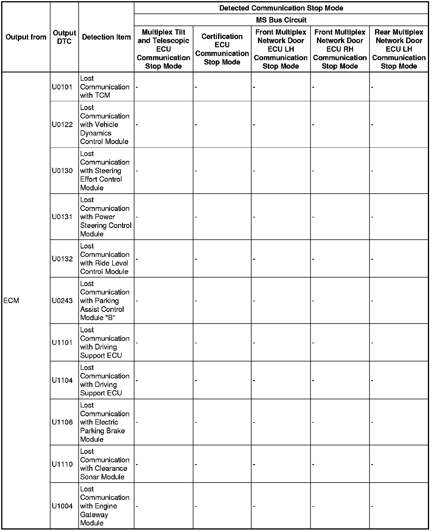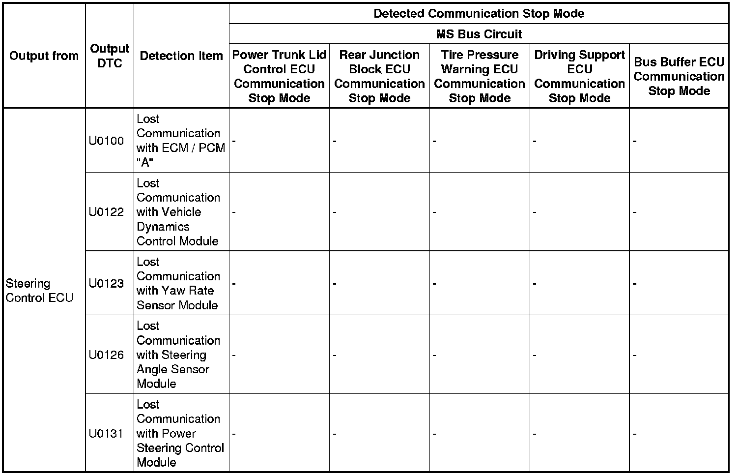 - *5: Only present DTCs output.