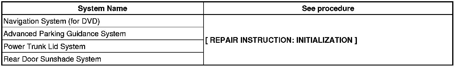 NOTE: When disconnecting the cable from the negative (-) battery terminal, initialize the following systems after the cable is reconnected.