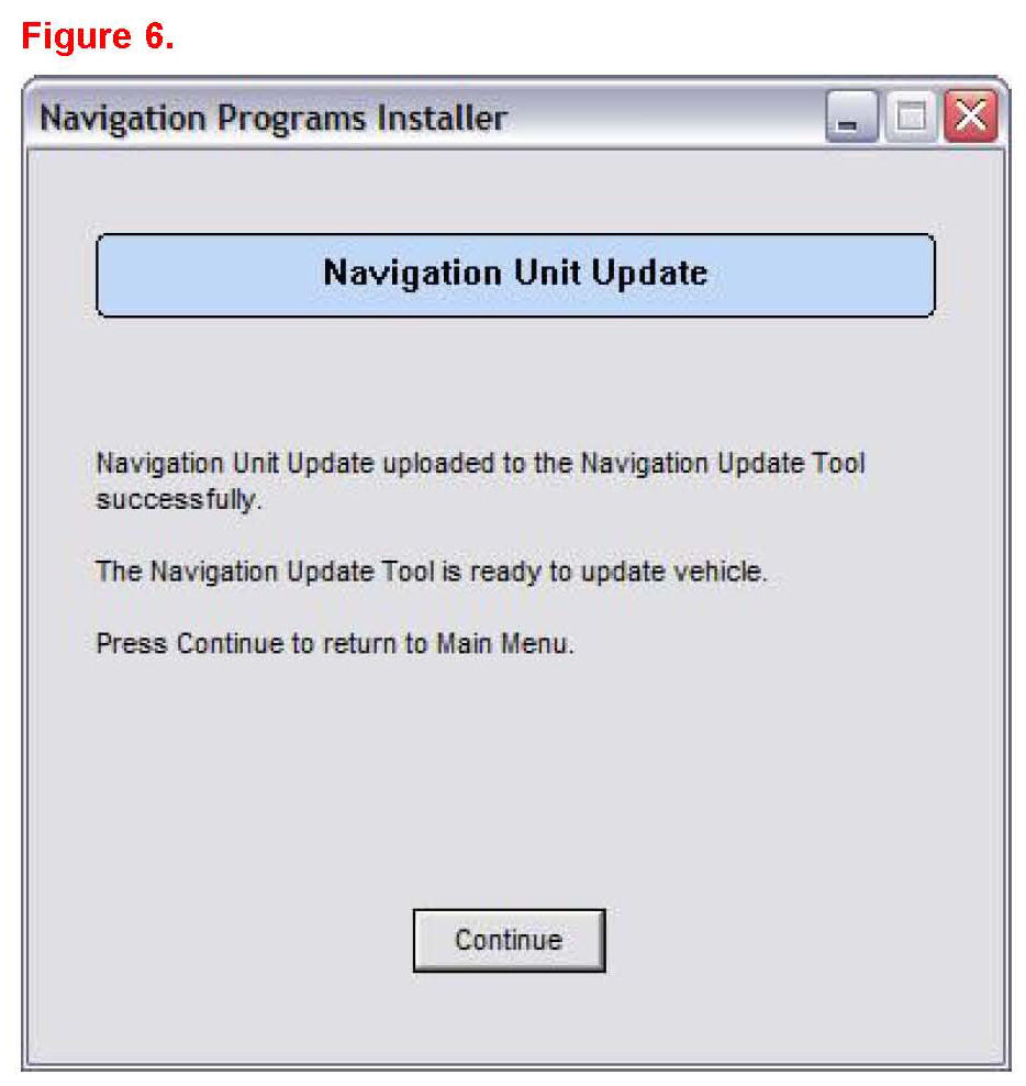 10. Once the Navigation Firmware is successfully loaded onto the Navigation Update Tool click Continue to finish the installer.