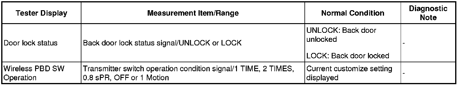 DOOR LOCK: WIRELESS DOOR LOCK CONTROL SYSTEM: DATA LIST / ACTIVE TEST