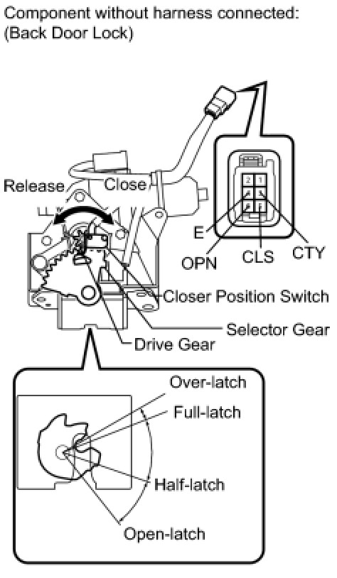 (1) Set the back door lock assembly to the full-latch position.