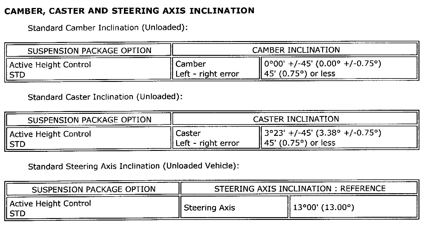 Standard Steering Axis Inclination (Unloaded Vehicle)