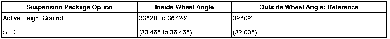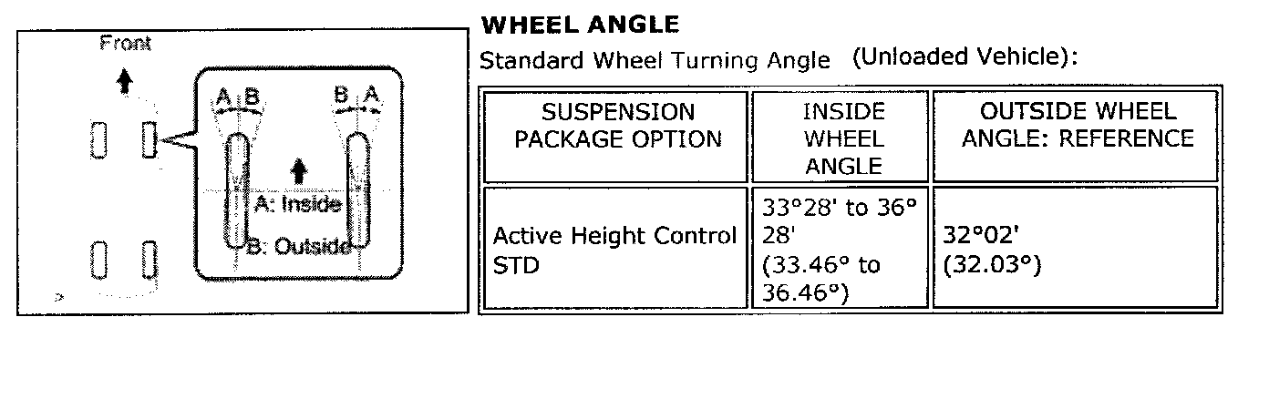 Standard Wheel Turning Angle (Unloaded Vehicle)