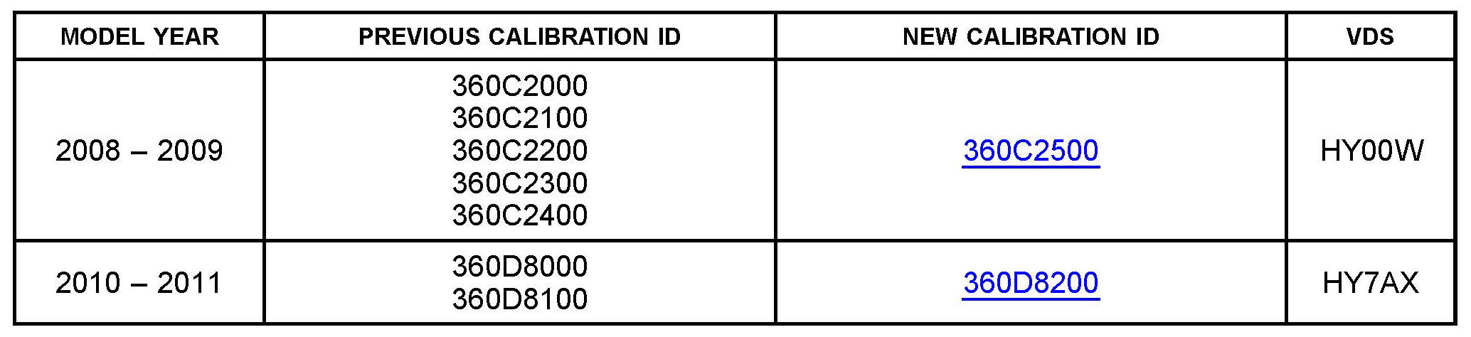 ^ Calibration ID(s) [Refer to the Calibration Identification Chart for the NEW CALIBRATION ID]