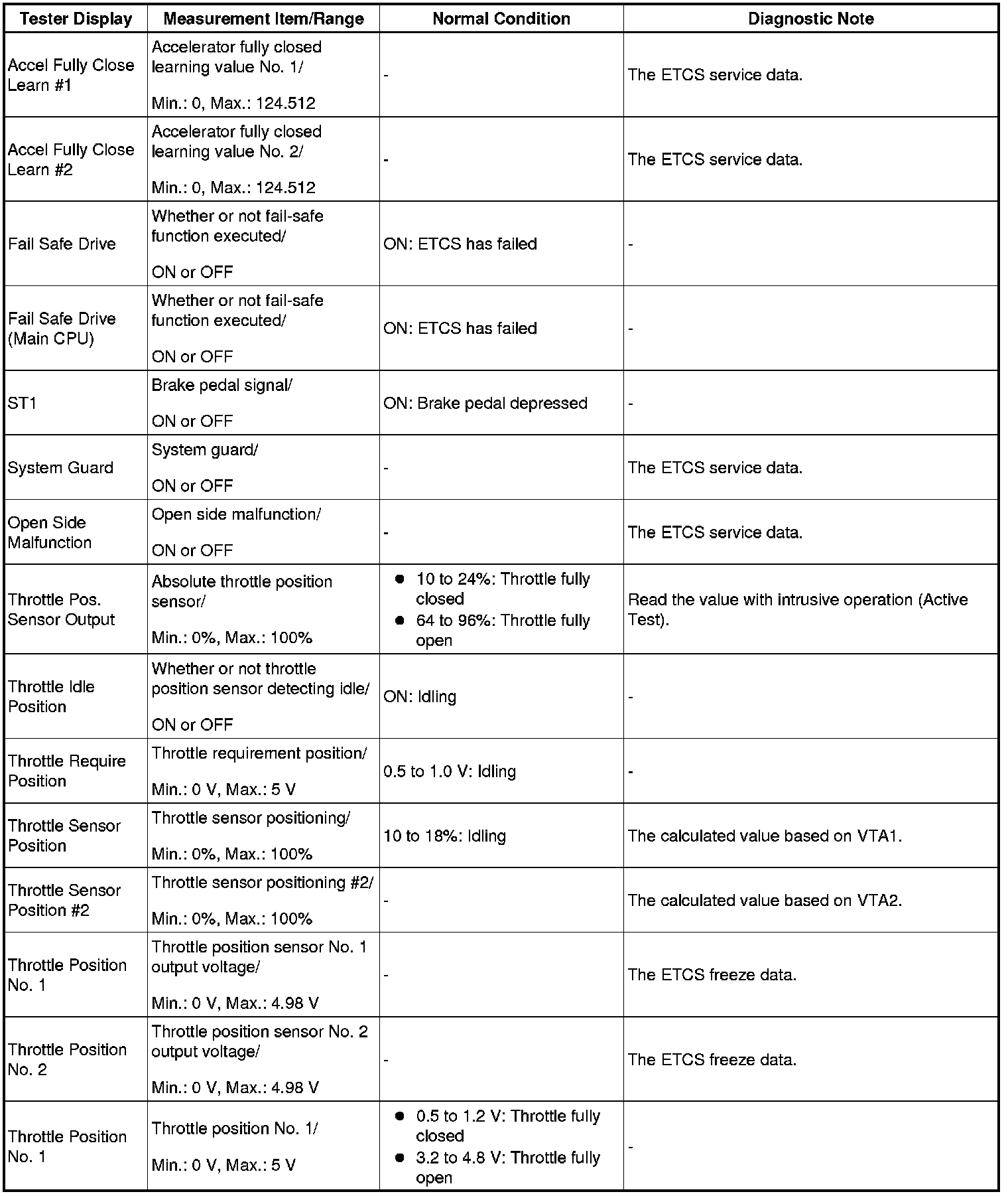 Using the Techstream to read the Data List allows the values or states of switches, sensors, actuators and other items to be read without removing any parts. This non-intrusive inspection can be very useful because intermittent conditions or signals may be discovered before parts or wiring is disturbed. Reading the Data List information early in troubleshooting is one way to save diagnostic time.