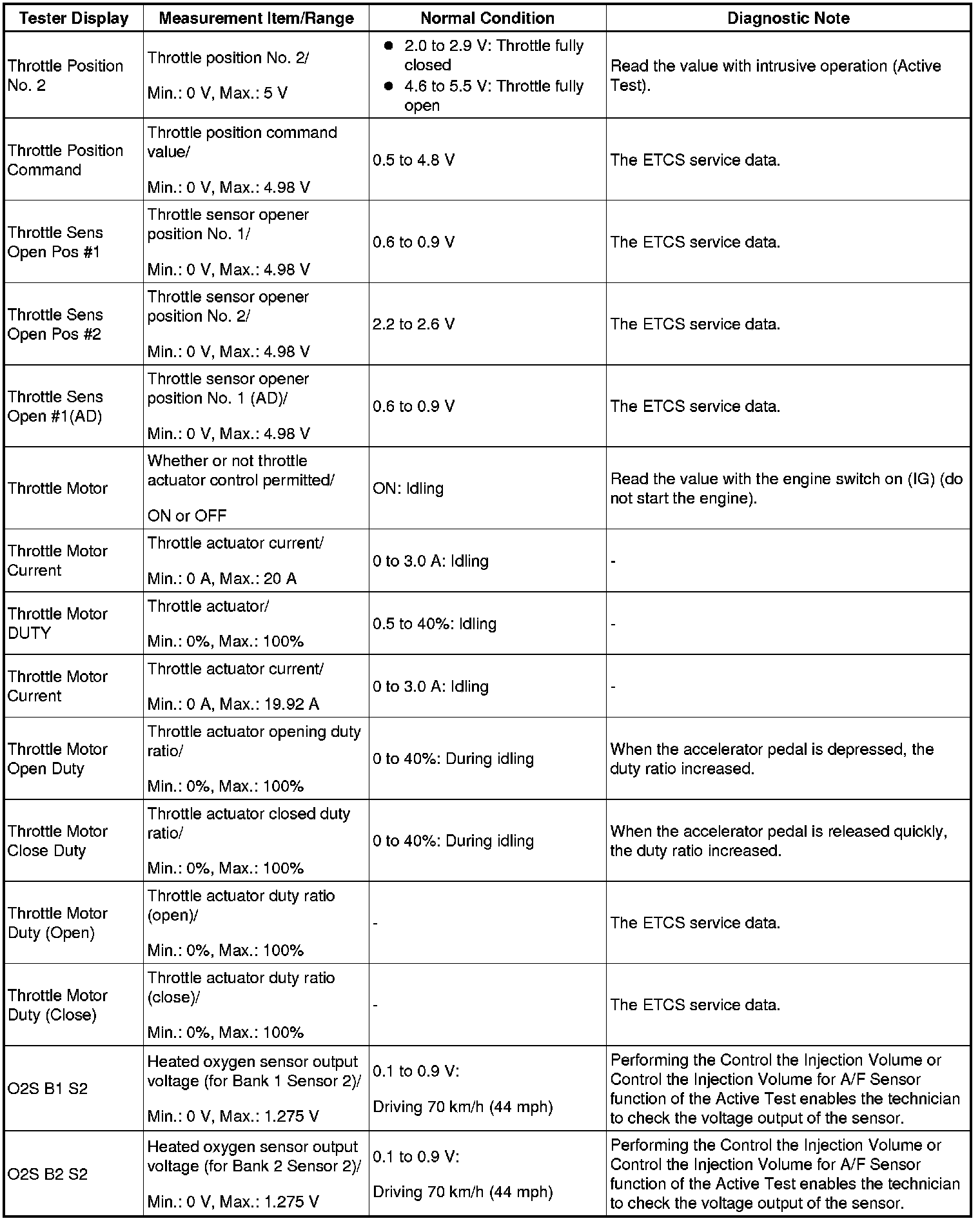- Normal Condition: If no conditions are specifically stated for "idling", the shift lever is in N or P, the A/C switch is off and all accessory switches are off.