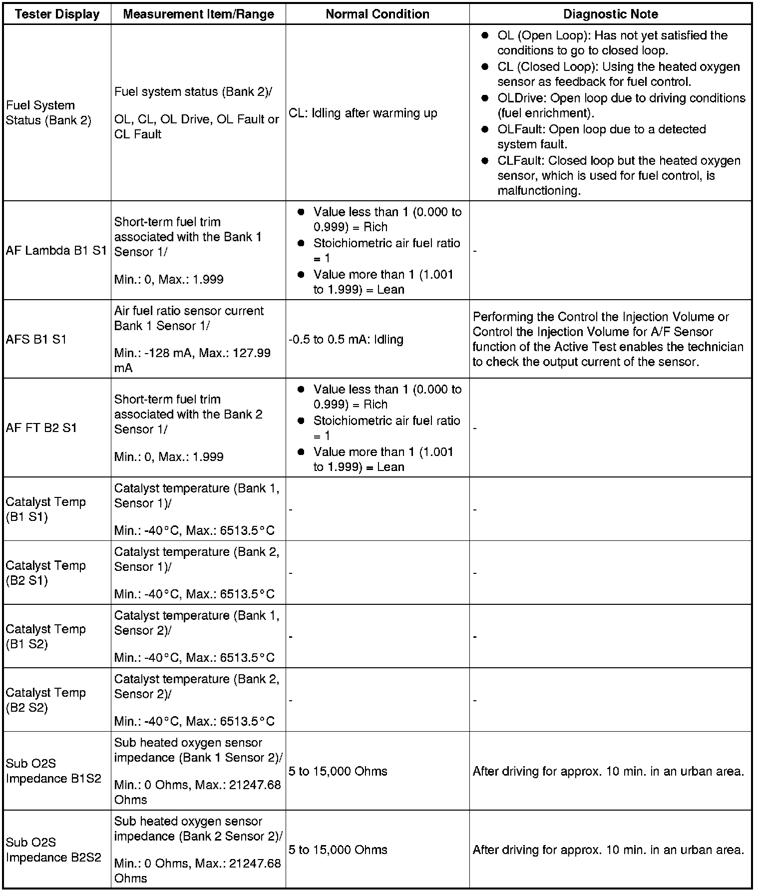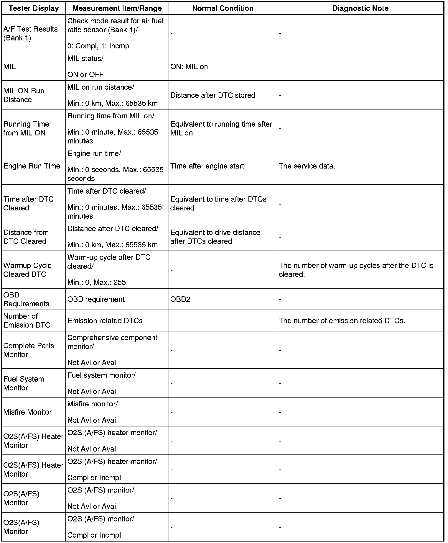 - *1: If the display of the Data List Prohibit the Catalyst OT Misfire prevent F/C item is Avail, perform this Active Test as described below.