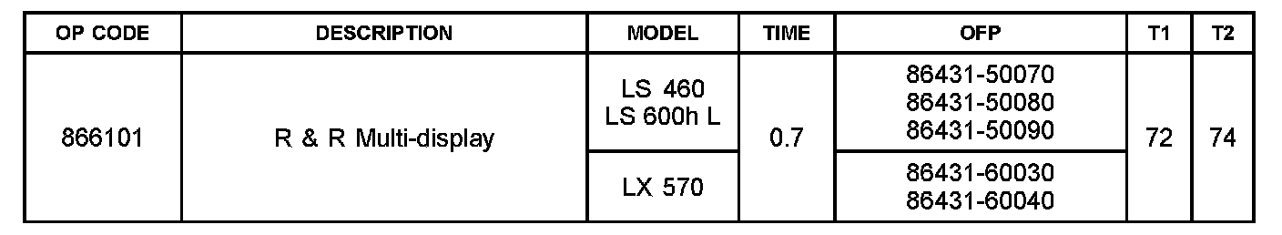 1. Confirm condition of blank or black multi-display assembly.