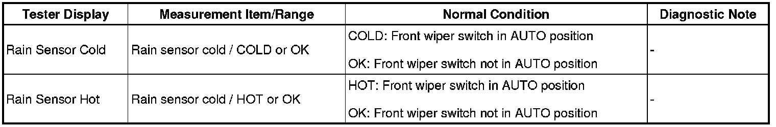 WIPER / WASHER: WIPER AND WASHER SYSTEM: DATA LIST / ACTIVE TEST