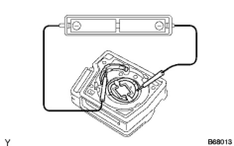 (1) Remove the battery from the electrical key transmitter that does not operate. Attach a lead wire (0.6 mm (0.0236 in.) in diameter or less including wire sheath) with tape or equivalent to the negative terminal Service and Repair.