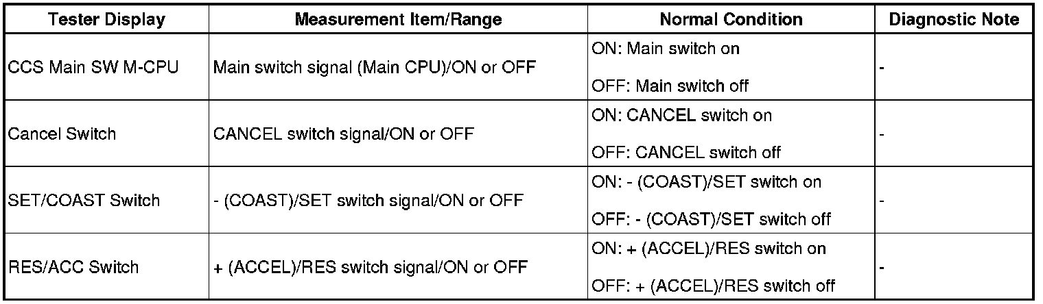 CRUISE CONTROL SYSTEM: Cruise Control Switch Circuit