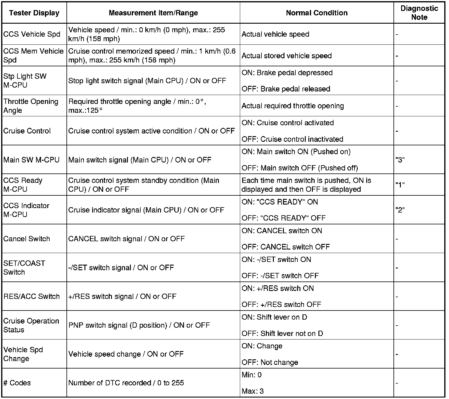 (d) Enter the following menus: Powertrain / Cruise Control / Data List.