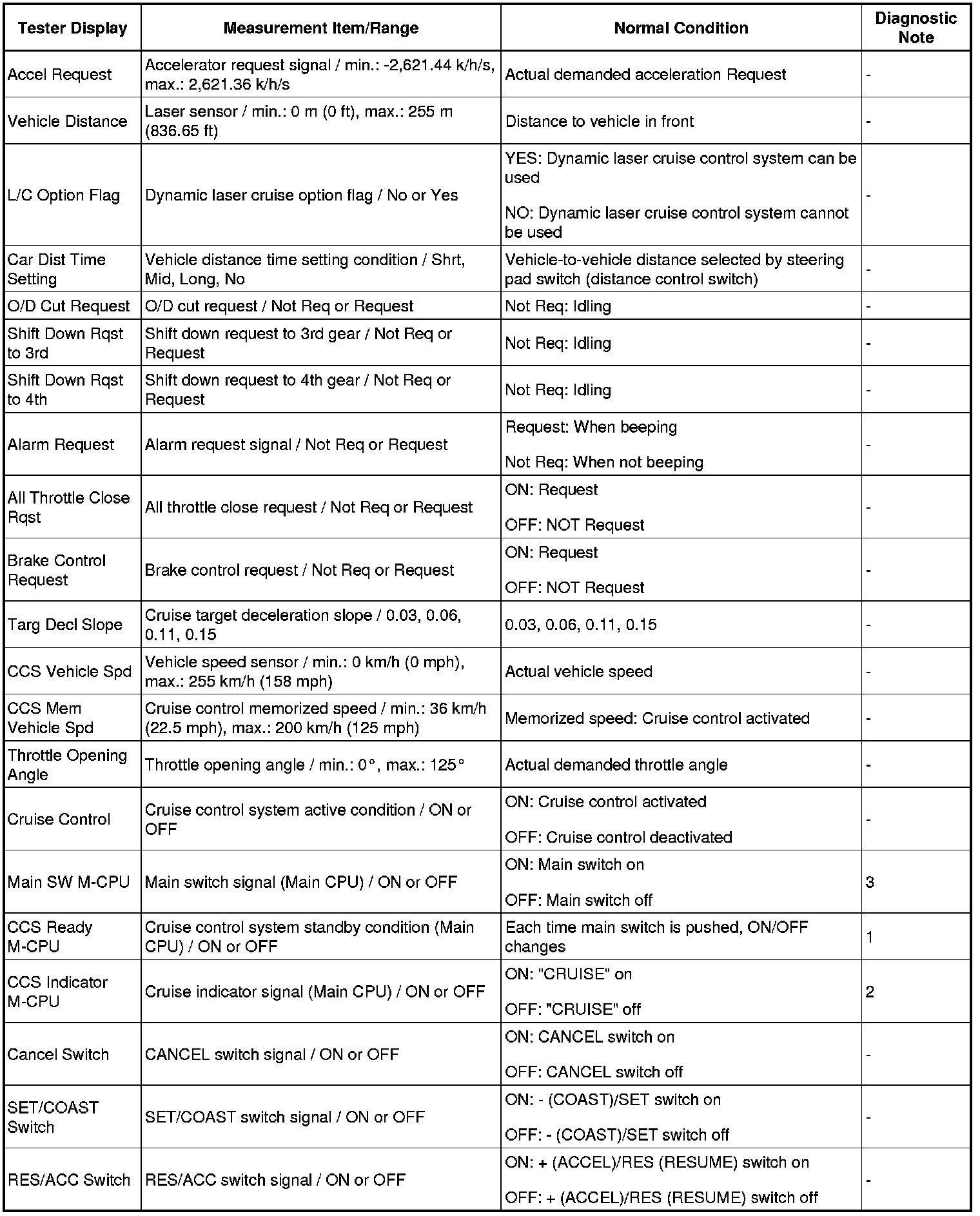 (d) Enter the following menus: Powertrain / Laser Cruise / Data List.