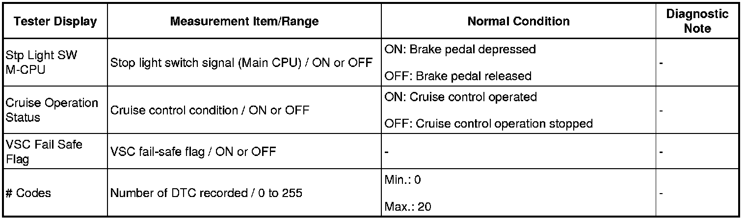 HINT: Using the Techstream to read the Data List allows the values or states of switches, sensors, actuators and other items to be read without removing any parts. This non-intrusive inspection can be very useful because intermittent conditions or signals may be discovered before parts or wiring is disturbed. Reading the Data List information early in troubleshooting is one way to save diagnostic time.