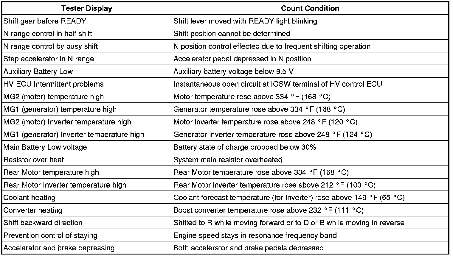 HINT: The HV control ECU records the special operations performed by the driver and the number of abnormal conditions that have been input to the ECU as operation history data.