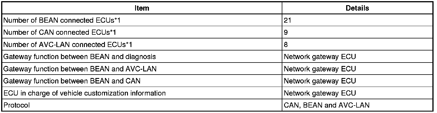 (1) The CAN, BEAN and AVC-LAN protocols have set guidelines for data. The guidelines include communication speed, type of communication wire, drive type and data length. These guidelines are established to facilitate ECU data communication.