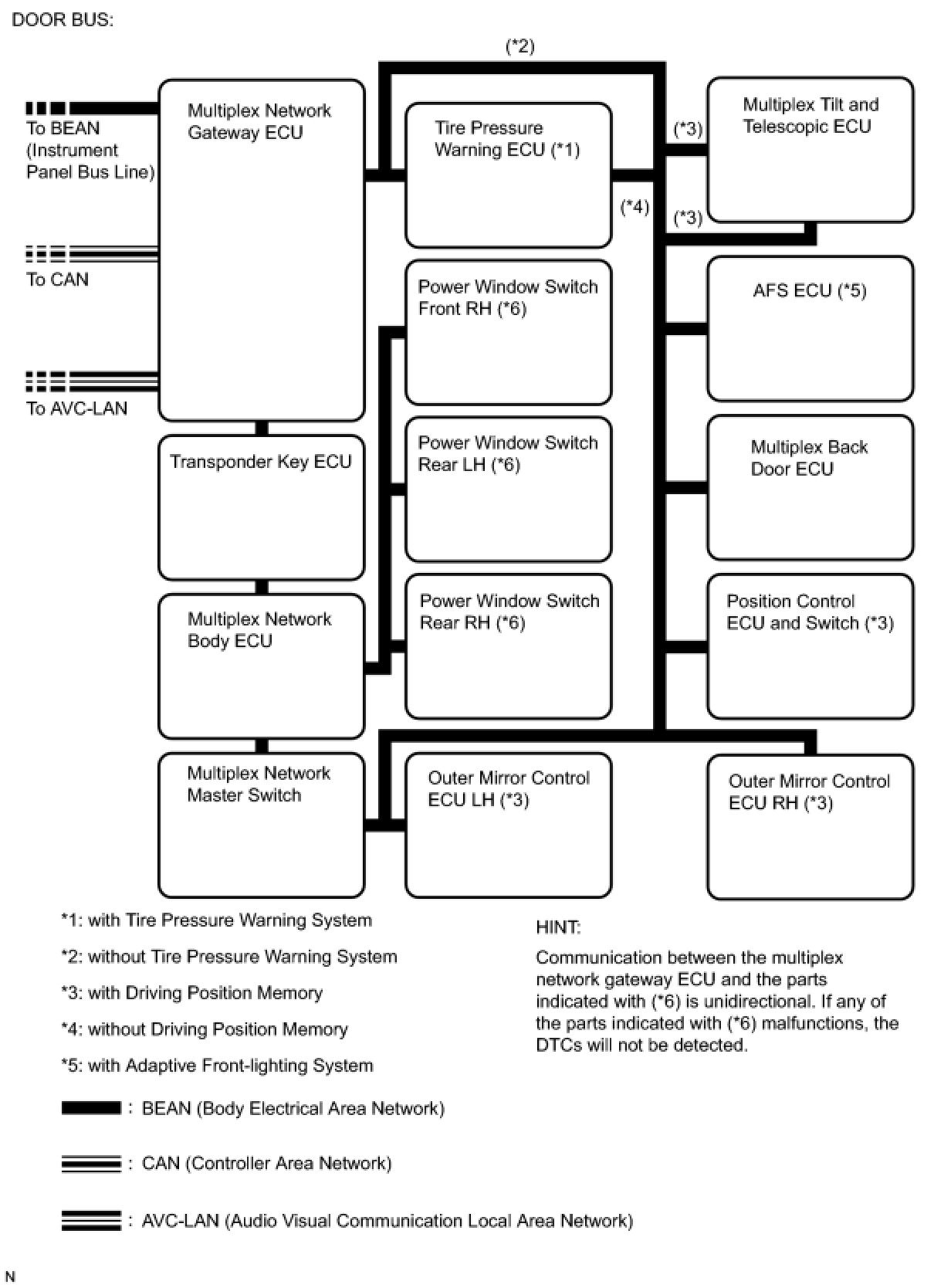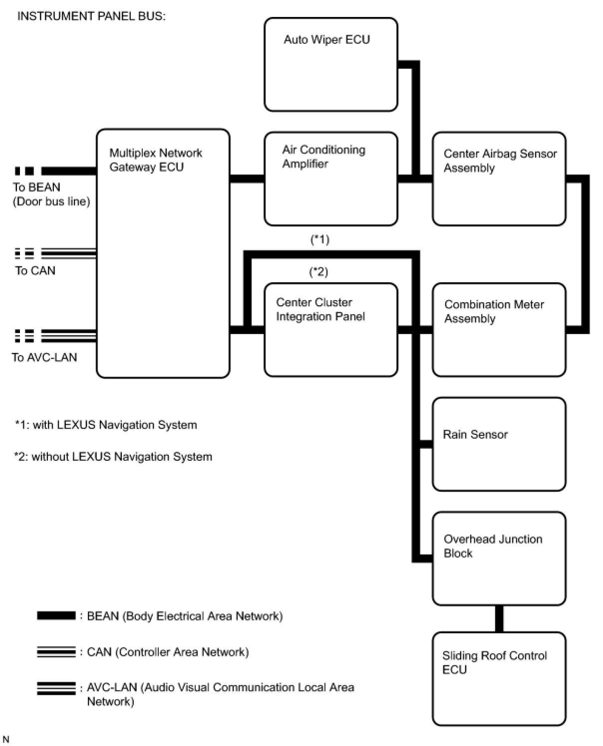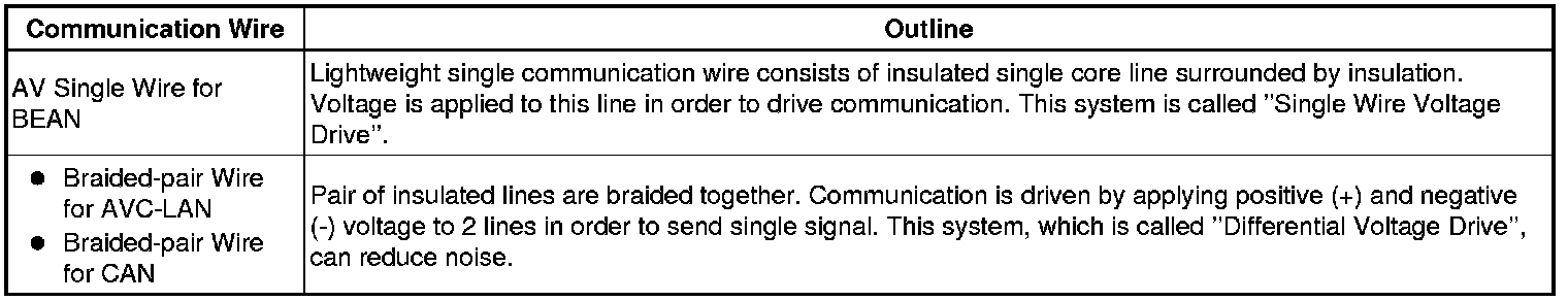 (2) A single, Automobile Vinyl (AV) wire is used for BEAN communication. A braided-pair wire is used for CAN and AVC-LAN communication.