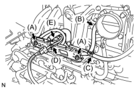 (c) Connect the fuel vapor feed hose No.1 (C).