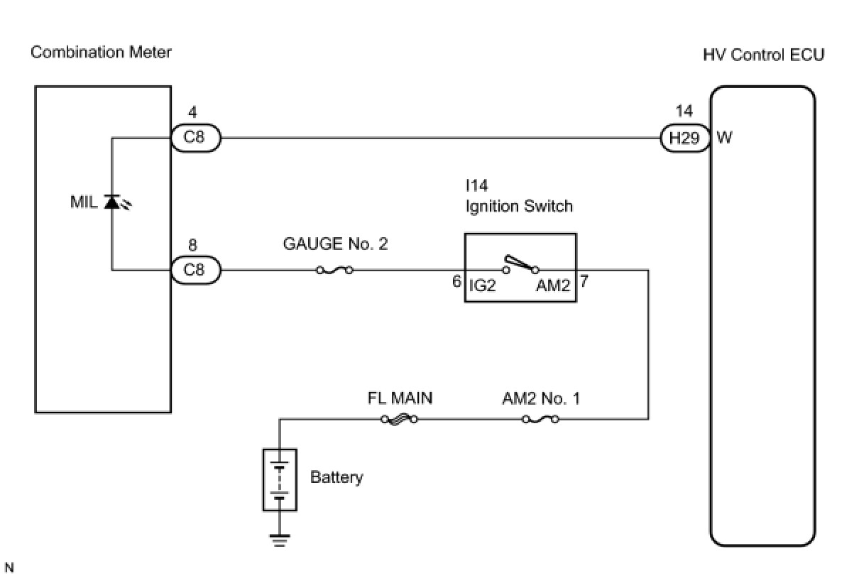 The MIL (Malfunction Indicator Lamp) is used to indicate malfunction detections by the ECM (Included in HV control ECU).