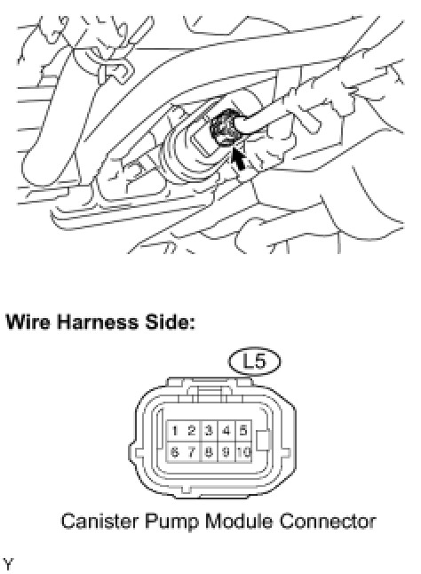 - Disconnect the hose between the canister and fuel tank from the canister. Close the canister on the area where the hose was connected and perform an inspection. The fuel tank can be eliminated from the suspected areas for leak checks.