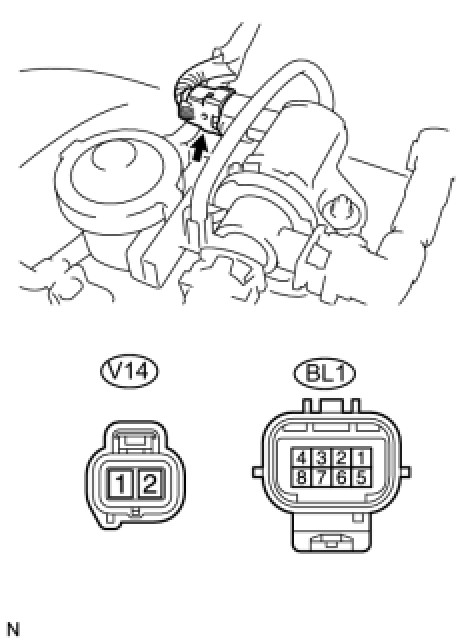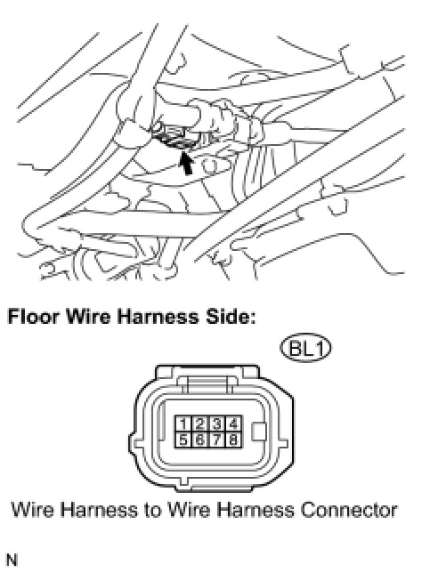 (b) Disconnect the BL1 wire harness to wire harness connector.