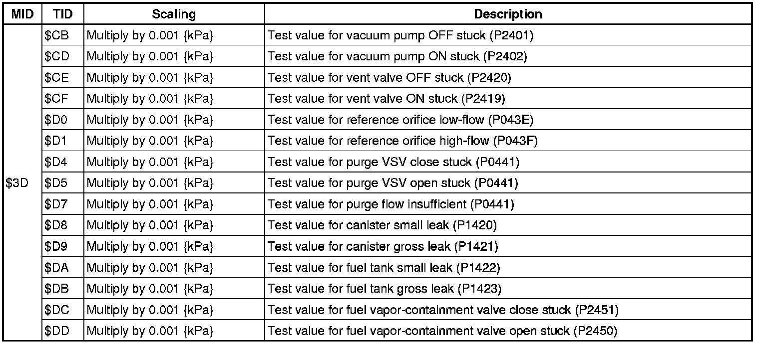 The test value and test limit information are described as shown in the following table. Check the monitor result and test values after performing the monitor drive pattern (refer to "Confirmation Monitor").