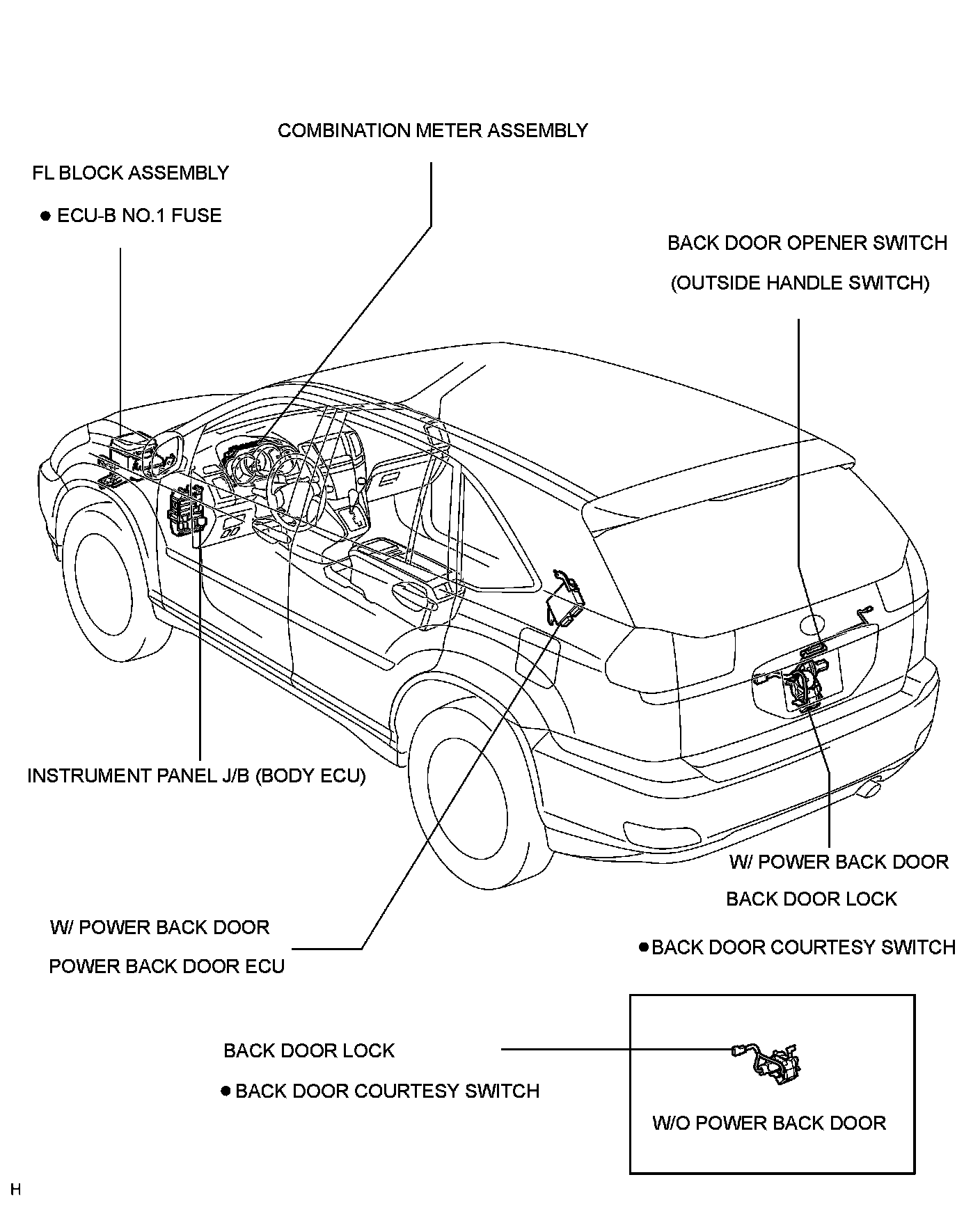 ENGINE HOOD / DOOR: ELECTRICAL BACK DOOR OUTSIDE HANDLE SYSTEM: