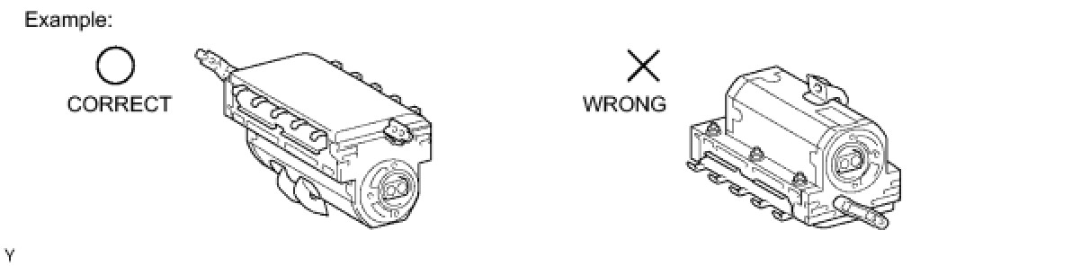 (1) Always place a removed or new knee airbag assembly with the airbag inflation direction facing upward. Placing the airbag assembly with the airbag inflation direction facing downward could cause a serious accident if the airbag inflates.