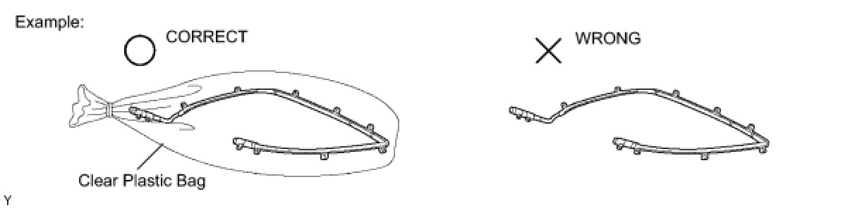 (1) Always place a removed or new curtain shield airbag assembly in a clear plastic bag, and keep it in a safe place.