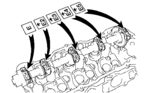 Mark the front side of each cylinder head bolt head with paint as shown in the illustration.