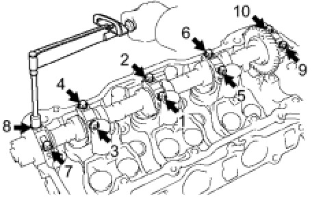 Retighten the cylinder head bolts by 90° in the same sequence as step (c).