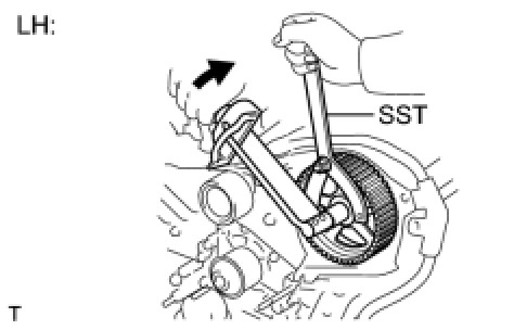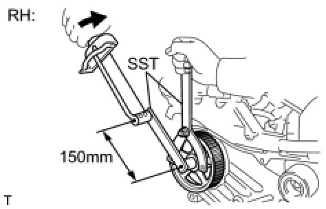 NOTE: The torque indicated above is for using SST without any extension tool. If extension tools are used, find the reading of the torque wrench by the formula Service Precautions.