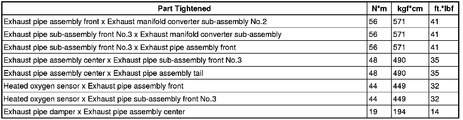 SERVICE SPECIFICATIONS: 3MZ-FE EXHAUST: