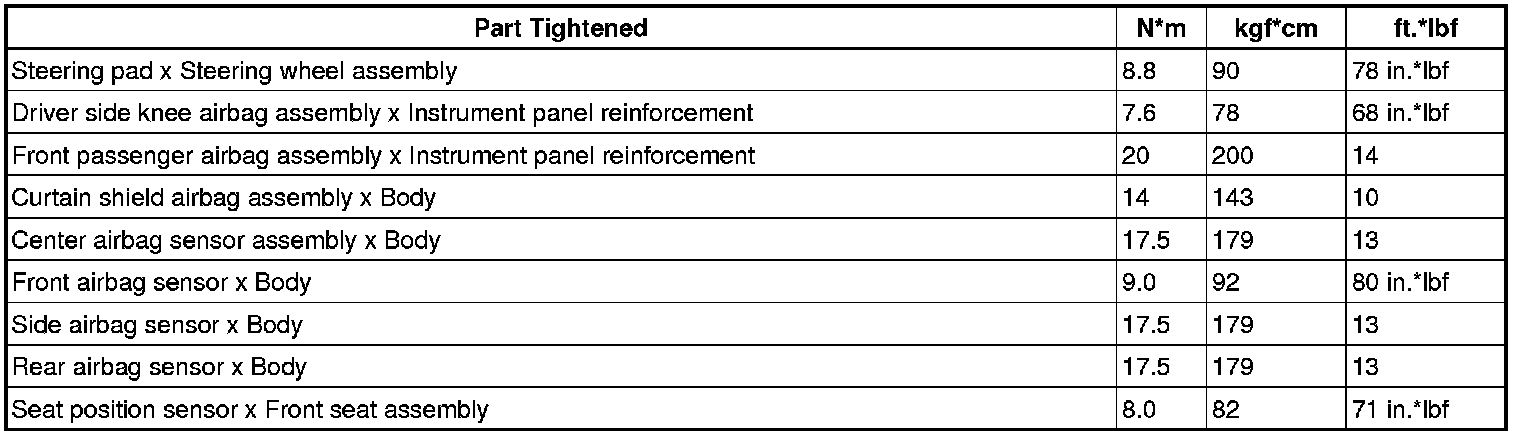 SERVICE SPECIFICATIONS: SUPPLEMENTAL RESTRAINT SYSTEM: