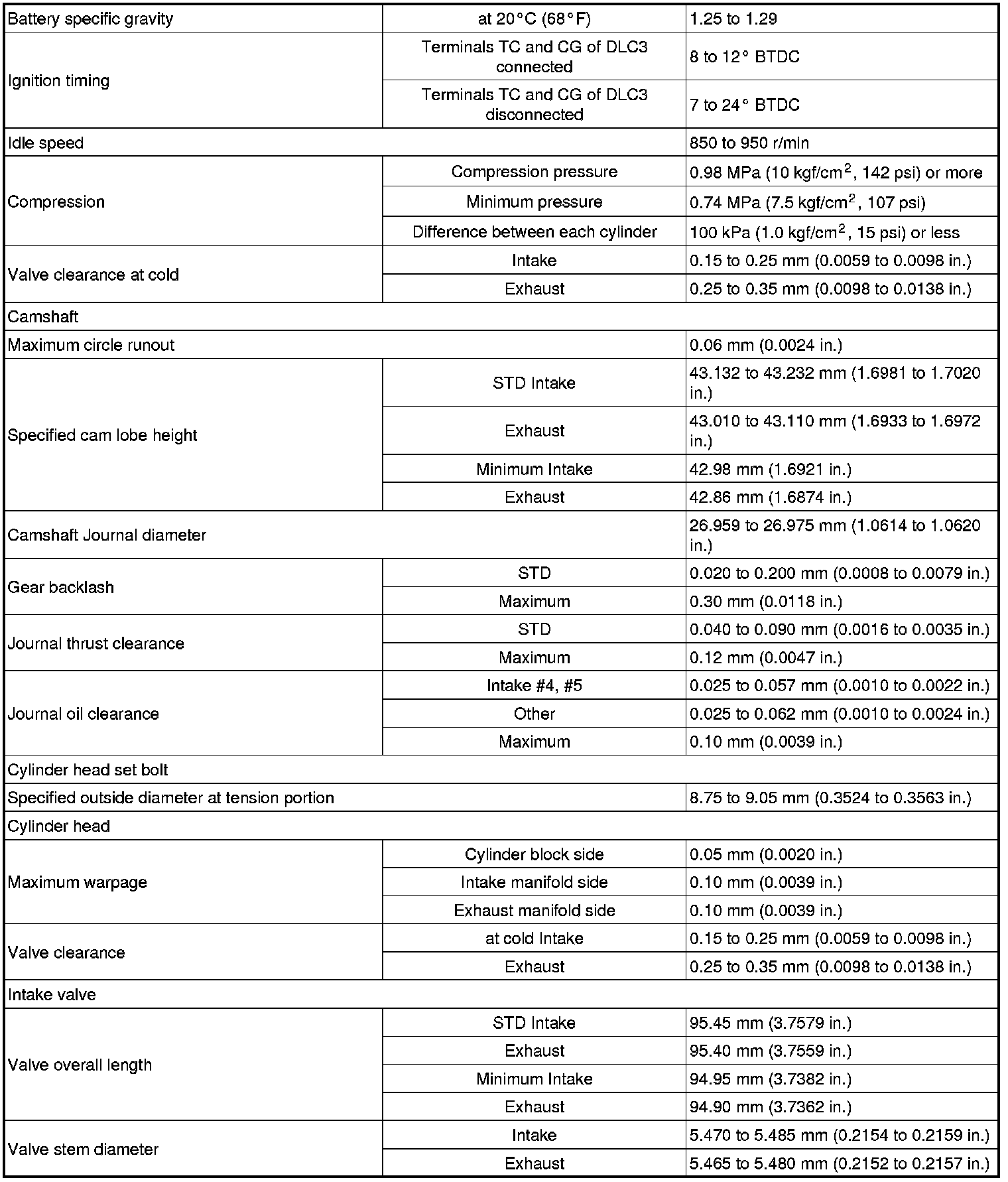 SERVICE SPECIFICATIONS: 3MZ-FE ENGINE MECHANICAL: