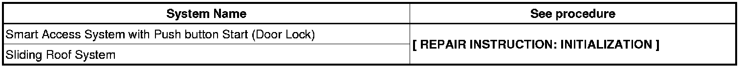 When disconnecting the cable from the negative (-) battery terminal, initialize the following systems after the cable is reconnected.