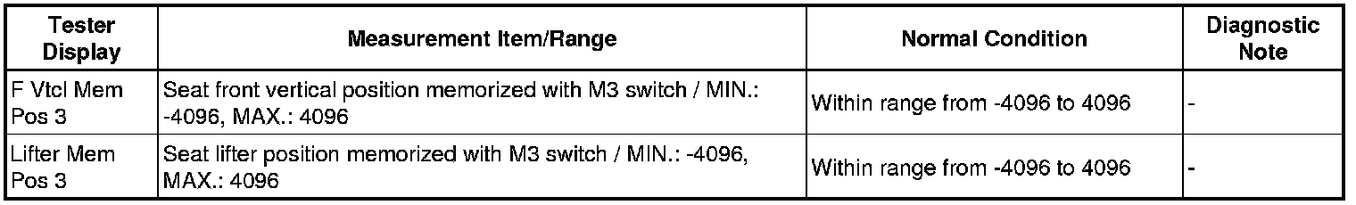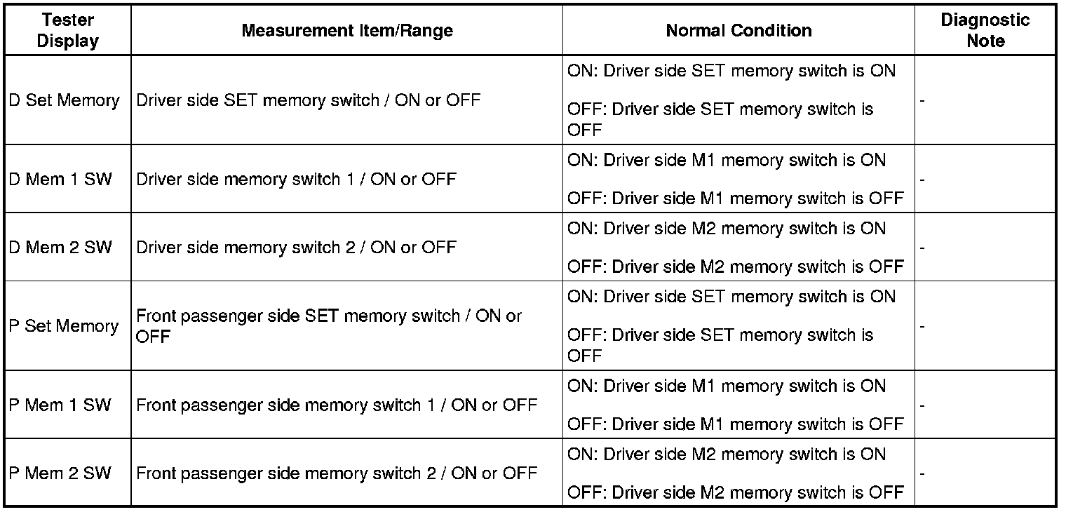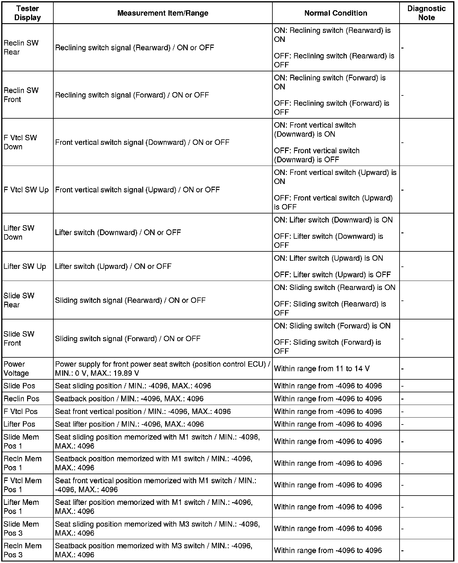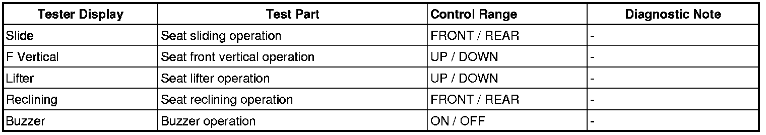 SEAT: FRONT POWER SEAT CONTROL SYSTEM (w/ Seat Position Memory System): DATA LIST / ACTIVE TEST