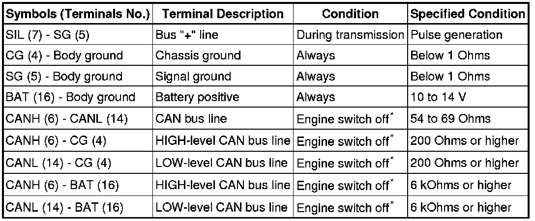 *: Before measuring the resistance, leave the vehicle as is for at least 1 minute and do not operate the engine switch, any other switches or the doors.