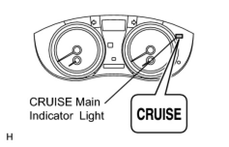 (b) Check that the CRUISE main indicator light illuminates when the cruise control main switch is turned on, and that the indicator light turns off when the main switch is turned off. If the results are not as specified, inspect the CRUISE main indicator light circuit Cruise Main Indicator Light Circuit.