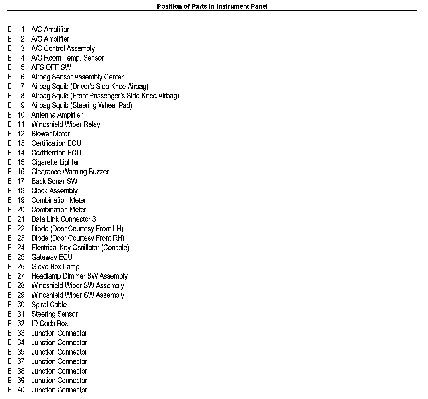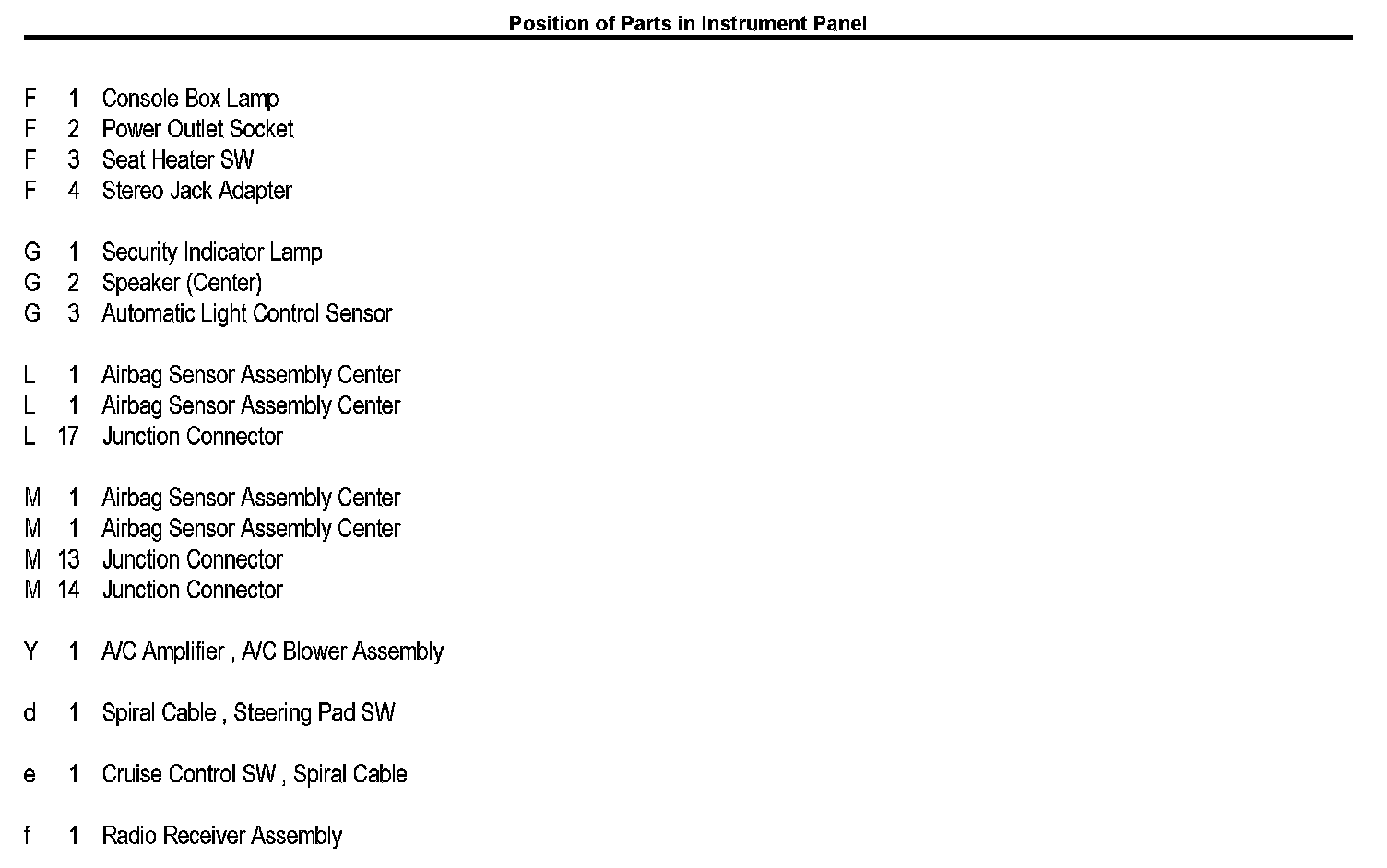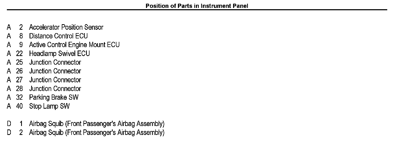 Position of Parts In Instrument Panel