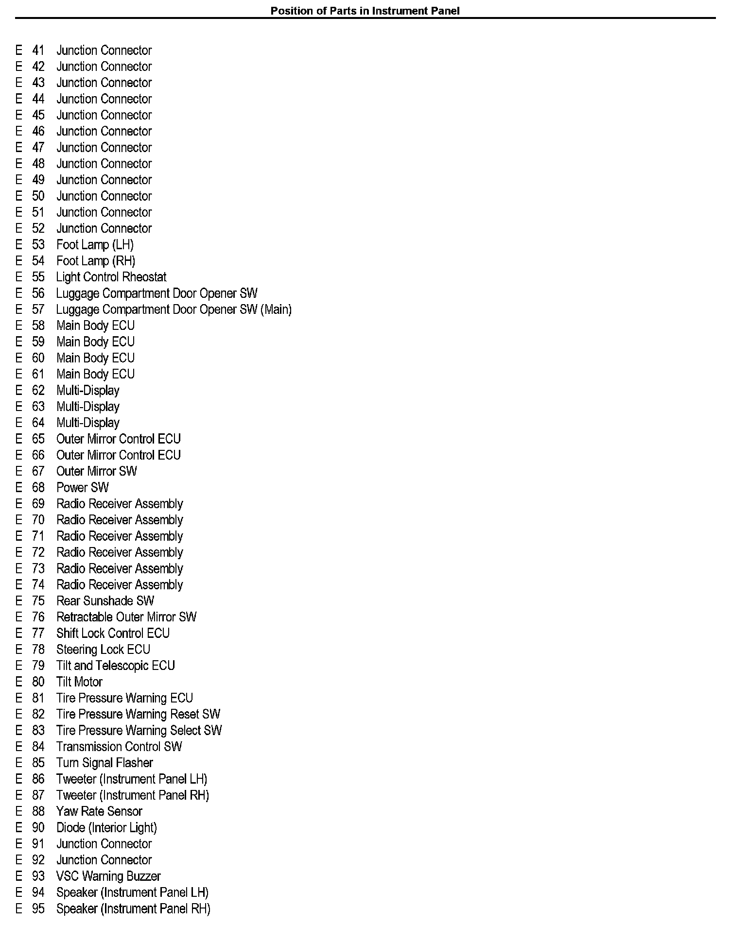 Position of Parts in Instrument Panel: