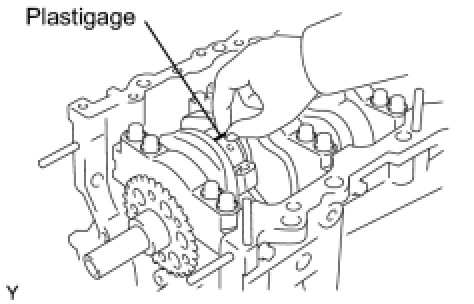 (c) Lay a strip of Plastigage across each of the camshaft journals.
