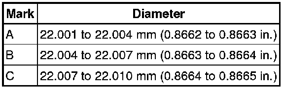 (c) Subtract the piston pin diameter measurement from the piston pin hole diameter measurement.