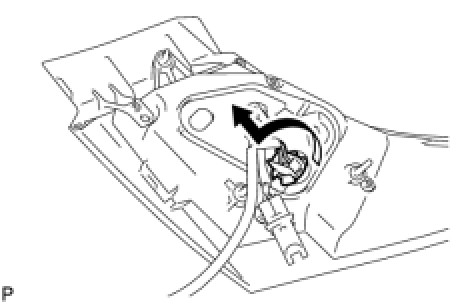(a) Turn the back up light bulb and the rear light socket and wire in the direction indicated by the arrow and remove them as a unit.