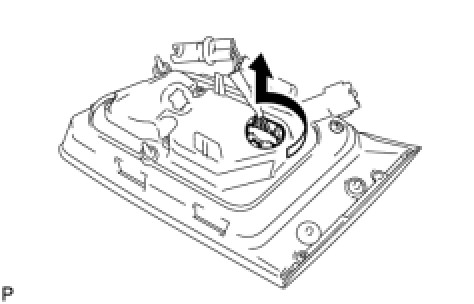 (a) Turn the tail and stop light bulb and the rear combination light socket and wire sub-assembly in the direction indicated by the arrow and remove them as a unit.