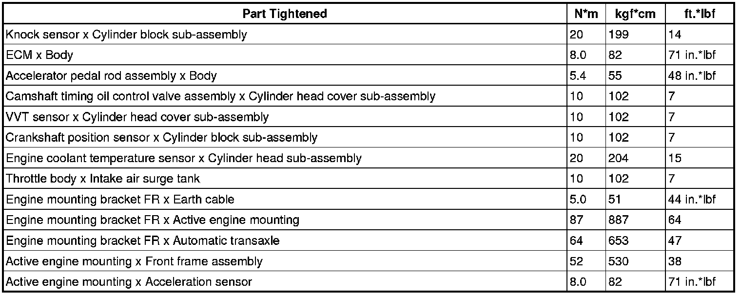 SERVICE SPECIFICATIONS: 2GR-FE ENGINE CONTROL SYSTEM: TORQUE SPECIFICATIONS